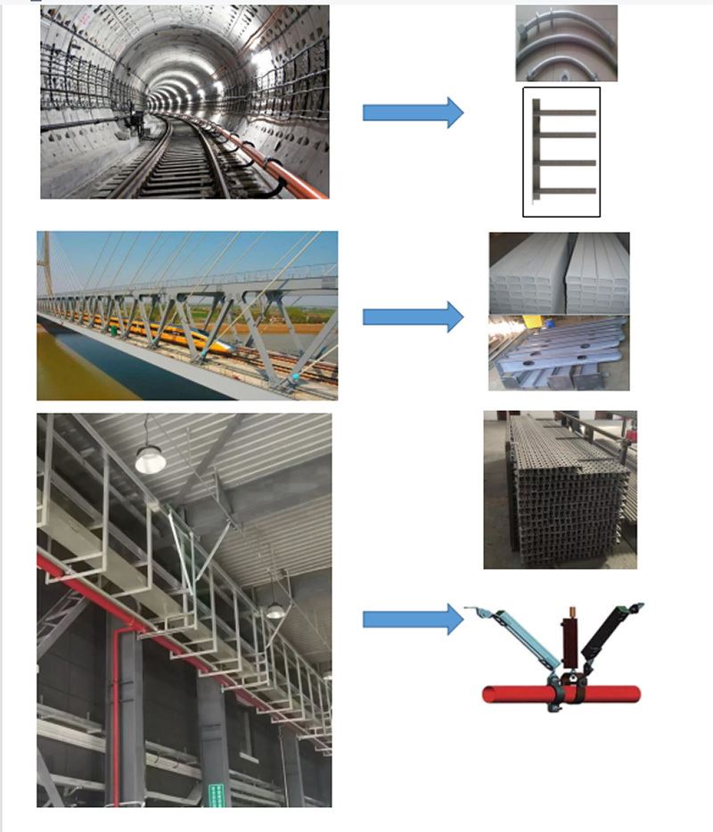 建筑領域:抗震支吊架、綜合支吊架、馬鋼腳手架、五金及鋼釘等;